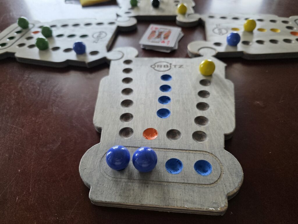 I love using games to bring people together. Orbitz is exactly that: boards that snap together so people can connect—around a kitchen table, at a campsite, in an RV, or anywhere friends and family gather.