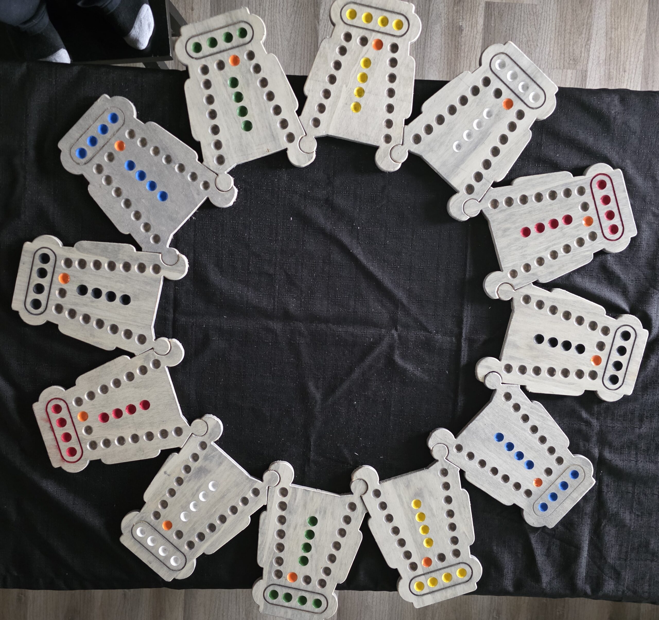 12 handcrafted Orbitz boards, perfect for families and large groups. Connect them together to play with 2–12 players and turn any table into a loud, unforgettable game night.